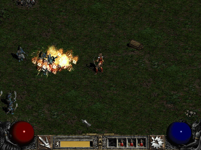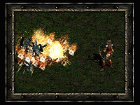 当一个战士获得了这个能力之后, 便能以惊人的速度和准确率发射箭矢, 并且能精准的命中目标. 老兵们经常谈起新兵在头一次遇到亚马逊的这个技能时几乎晕倒. 不要相信这些话, 因为最终被吓倒的往往是老兵自己. 效果: 让射出的箭矢自动分裂攻击, 并瞄准数个靠近的敌人. 炮轰是很多高等级弓系亚马逊喜欢的技能, 尽管多重箭也是一个不错的选择. 炮轰会自动瞄准屏幕范围之内的目标并射击. 技能等级越高, 可以攻击的目标就越多. 炮轰可以有不错的怪物报警效果. 你在某一地区开始使用炮轰后, 就可以大概知道周围怪物的位置. 或者是出现了新的怪物. 试着将一群怪物尽量的引诱到一起, 这样可以更好的利用穿刺的效果, 也可以使你不用总是后退来获得距离, 提升攻击效率. 炮轰对于单个怪物不是个很好的攻击手段. 你会消耗很多的法力. 最好使用其他更有效的技能. 炮轰有时也能攻击到屏幕外不远的地方, 不过多重箭在这方面更强一些. 炮轰和冰冻伤害配合起来效果很好. 寻找带有冰冻伤害的物品来使得你的攻击带有冰冻属性. 这将会把怪物冻住, 杀死怪物也可能不会留下尸体. 冻结之箭和炮轰配合在普通和恶梦里面效果相当好. 到了地狱难度后冻结时间会有所减少, 效果不是很明显了. 冻结之箭和炮轰可以设置两个快捷键来使用, 先用冻结箭使得怪物冻住, 然后用炮轰将其打碎. 最好将炮轰设为右键技能, 这样在你逃跑的时候不会因为错误点击了炮轰而无法移动. 炮轰在圣骑士的专注灵气下的作用公式如下: 炮轰有隐藏的 "最小射击次数" 效果. 这意味着炮轰在攻击单个怪物时可能会产生最少射击效果, 但是当多余一个怪物, 那么可能就会有更好的射击效果. 这对于面对单个怪物时, 设法进行多次射击非常有帮助, 可以将怪物锁定进行攻击. 公式如下: 射击次数 = 2 + 技能等级 / 4 四舍五入.炮轰锁定 当施展炮轰的时候, 你使用的角色将无法移动, 直到一次炮轰完全施放完毕. 炮轰的等级越高, 攻击的敌人就越多, 而锁定的时间也就越长. 专家级的玩家一般都不在这个技能上面加太多的技能点, 而对普通的玩家则没有什么. 只需要注意逃跑的时候不要使用这个技能就可以了.