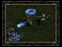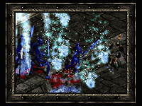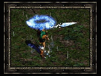 通过训练能够获得的最有效的攻击性法术. 使用这项法术, 整片的敌人将被大片如冰雹般落下的冰块冷冻致死, 那些可怜的幸存者也只能缓缓地蠕行和哀号, 直到同样被寒冷杀死. 效果: 召集一场暴风雪, 以致死的寒冷攻击敌人.