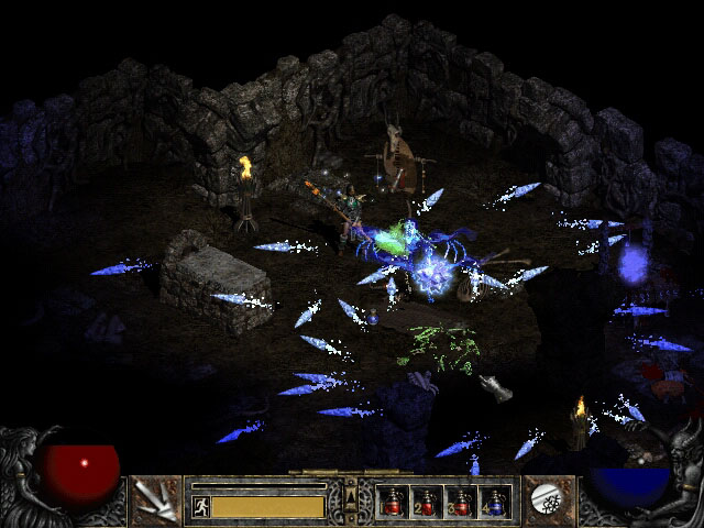 新手级的冰系法术之一是产生带有冰冷能量的水晶. 当这水晶击中敌人时, 将使之受到寒冷的痛苦并减缓它的动作. 效果: 发射一个冰球, 伤害并减慢目标. 低级技能中相当有用的一项, 在冰弹上投放更多的技能点之前, 记住当 6 级时可以使用冰风暴. 你可以找个加冰弹的法杖来增加这项技能的等级. 冰风暴会冻结目标并将之击碎, 这样其他的怪物将无法复活它们.