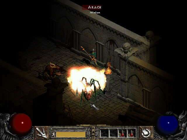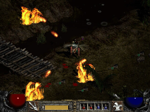 火弹[1], 暖气[1], 地狱之火[6], 炙烈之径[12], 火球[12], 火墙[18], 强化[18], 陨石[24], 支配之焰[30], 九头海蛇[30] 火系技能对火焰免疫的怪物无效. 在你用回城卷轴或小站以后, 陨石, 火墙, 烈焰之径和九头海蛇这些法术效果会立即消失. 所以你在回城期间它们不会造成伤害.