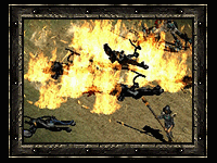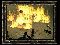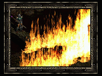 这技能使法师点燃一个火焰的屏障来保护她的侧翼免受敌人的包围, 使她和她的队友取得战术上的优势. 任何不知情的生物试图穿过这道屏障时会感受到这火焰的强大力量, 并通向灭亡. 效果: 创造一道火墙.