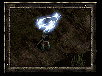 用这种法术攻击时, 法师从指尖创造出一道带有电系能量的辐射波, 周围的所有敌人会受到破坏性的打击. 这项法术用来对付蜂涌而来的近战的敌人十分理想.